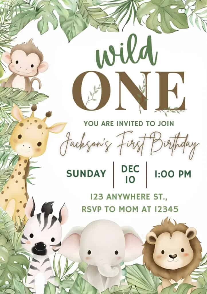 Get adorable Safari-themed invitations that are easily editable on a free Canva account. All you need to do is put in your details, and your invitation is done! Print it off or send it out in an email, easy and simple!
